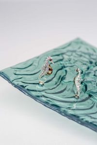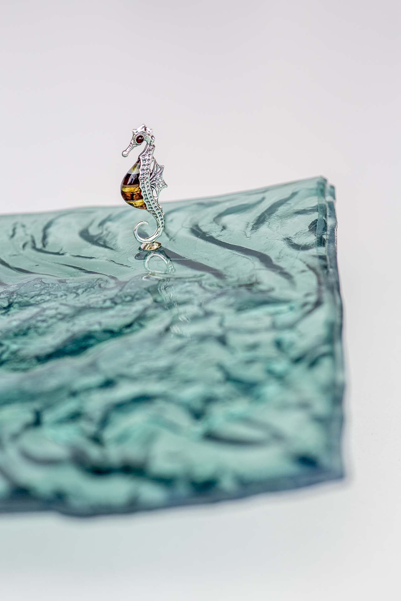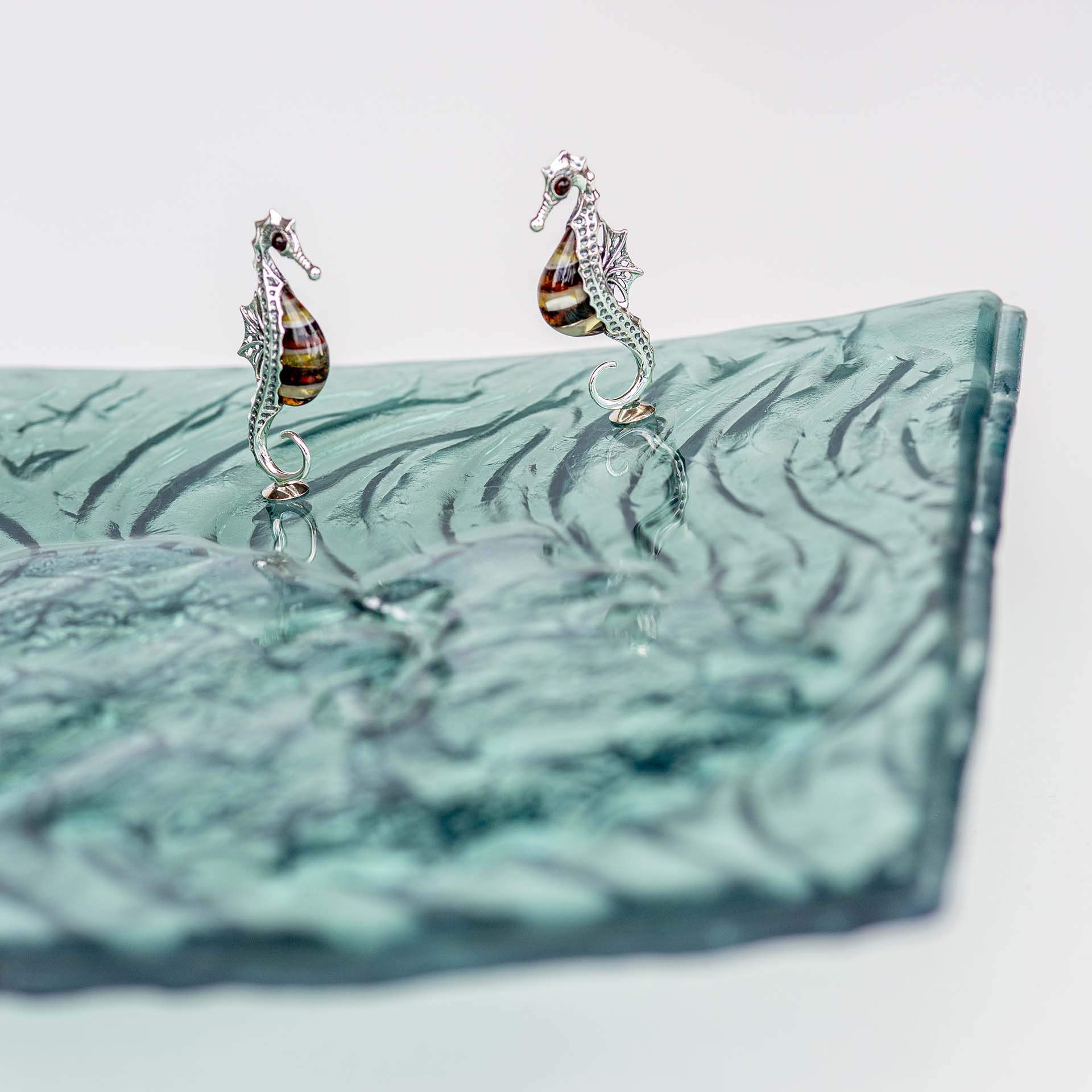 3 srebrno-bursztynowe koniki morskie