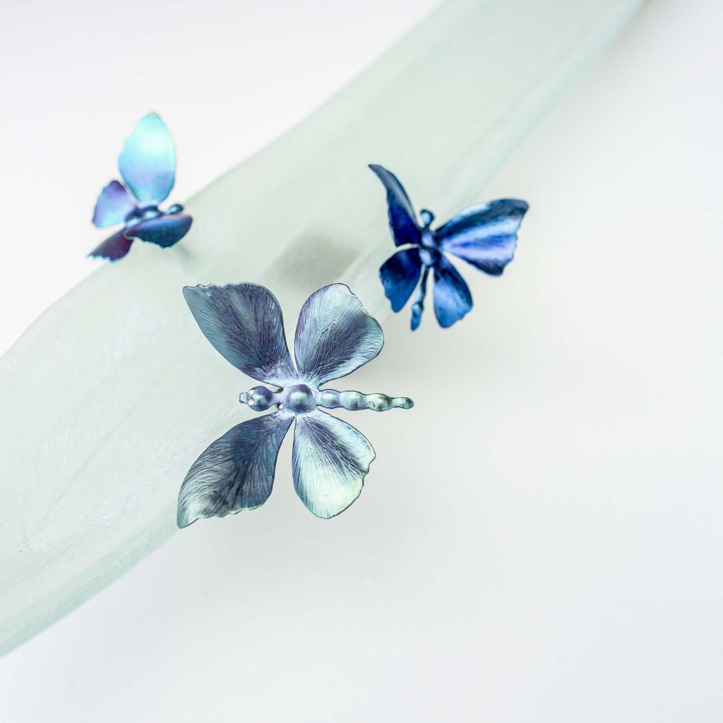 5 ręcznie wykonanych tytanowych motyli